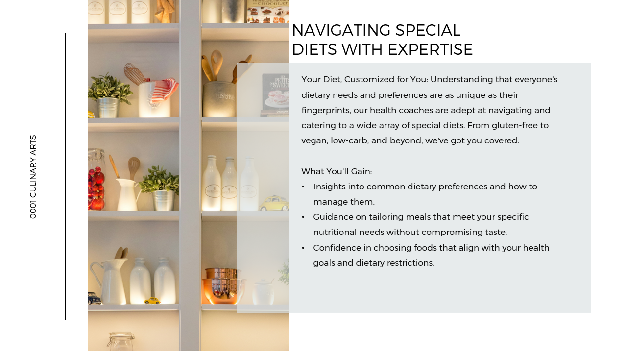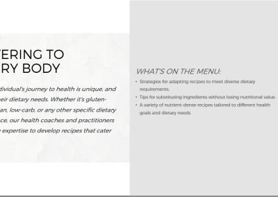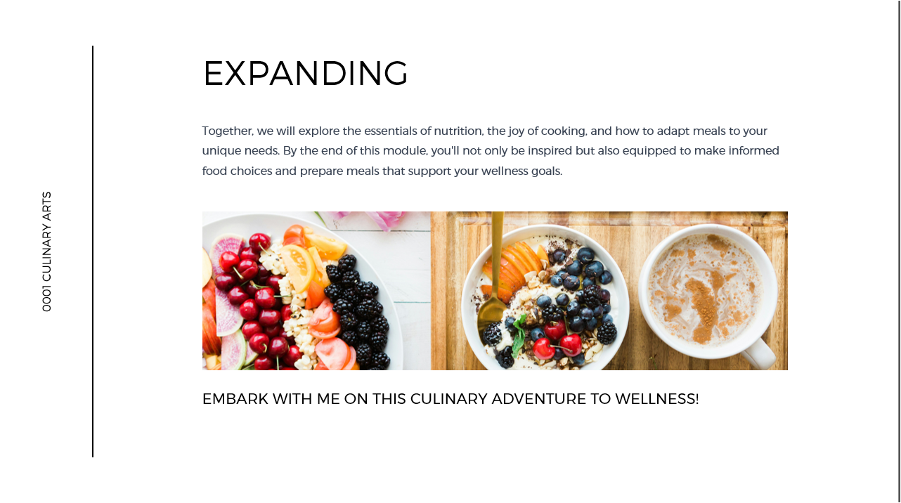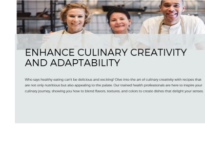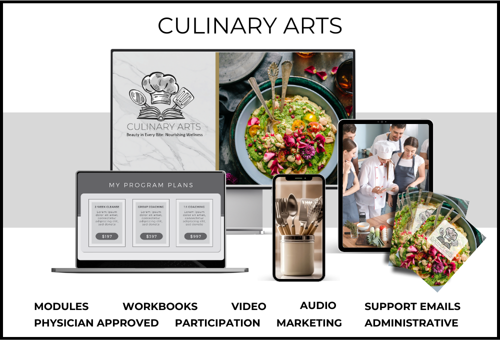 “Participating in this Culinary Arts Program not only empowers you to significantly enhance your ability to create an enjoyable eating experience with healthy, fun lessons but also offers you the opportunity to learn about nutrition from wellness content that extends your reach beyond one-on-one sessions.”