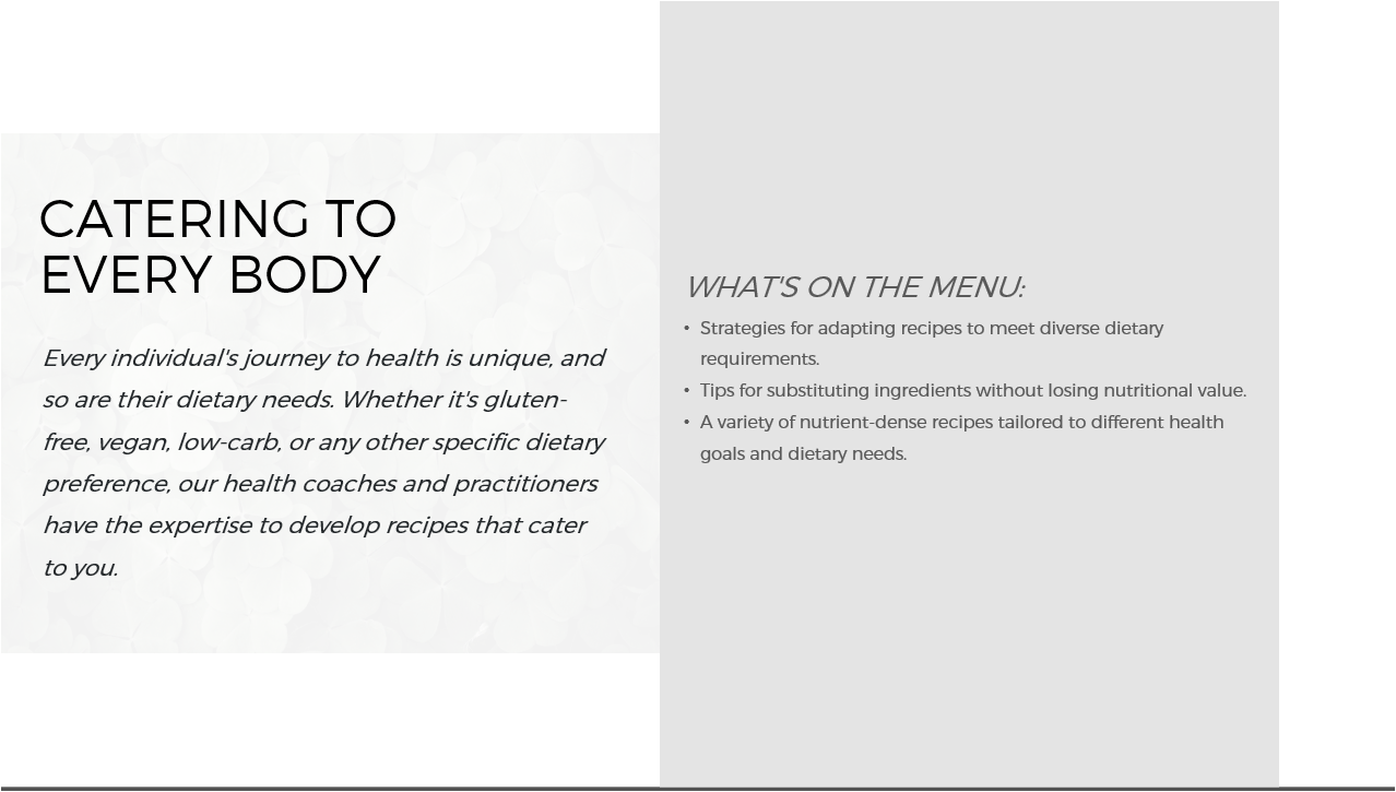 - Personalizing meals for clients with specific dietary needs.