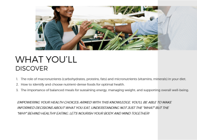 SEE, UNDERSTAND, AND EXPERIENCE THE DIRECT IMPACT OF HEALTHY EATING HABITS! LEARN TO ENJOY FOOD SELECTION, PREPARATION, AND PRESENTATION!