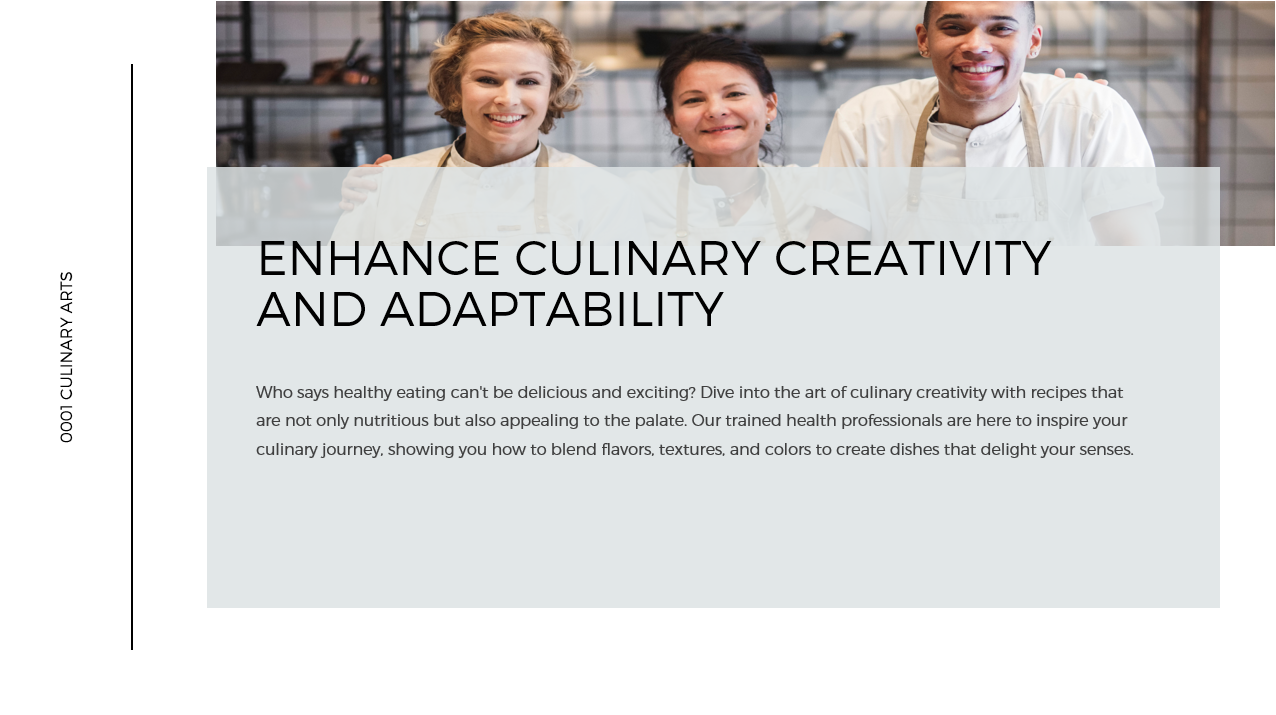 - Innovative Recipe Development: Encourage creative recipe design, focusing on health-conscious menus for various dietary needs.